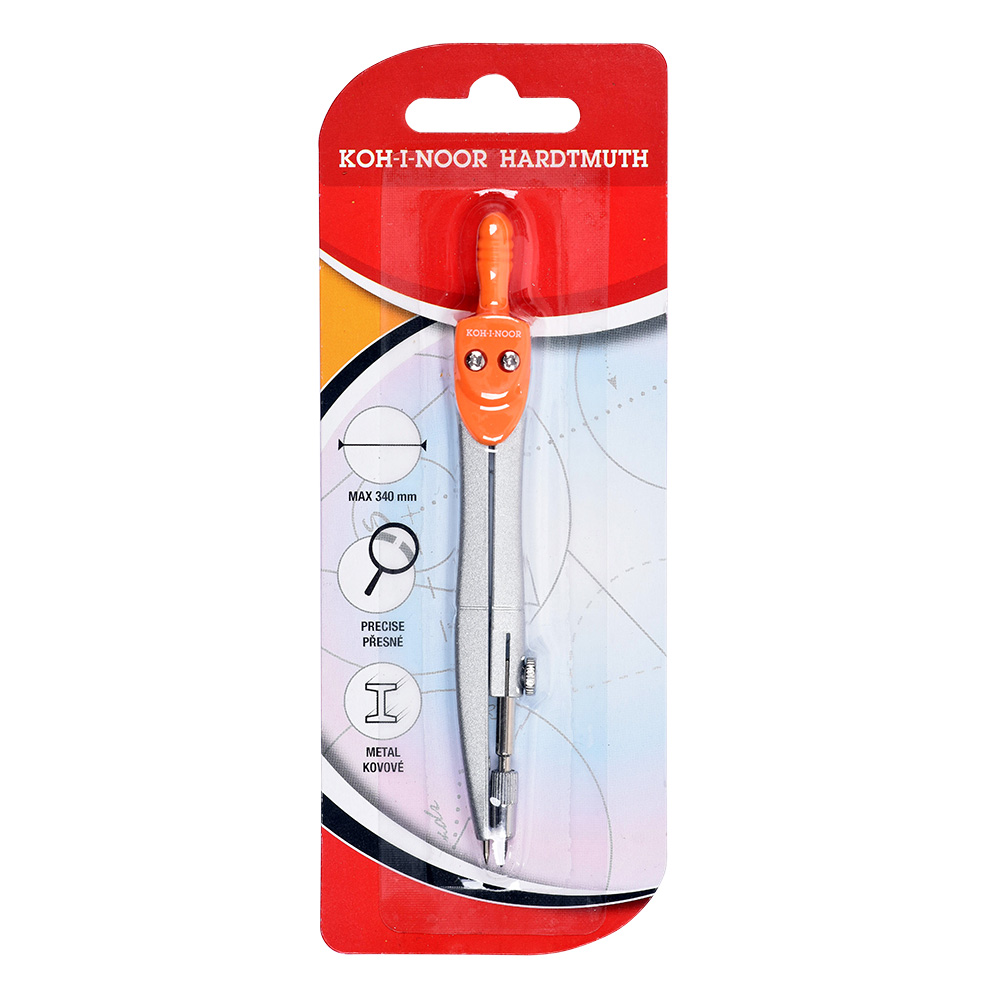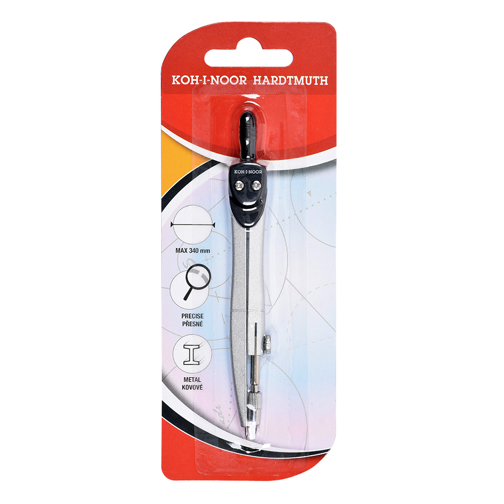 Металлический циркуль для начальной школы предназначен для рисования окружностей диаметром до 340 мм. Диаметр оси держателя грифеля составляет 3,5 мм, диаметр грифеля — 2 мм. Циркуль изготовлен из цинкового сплава с поверхностной обработкой серебристого металлического цвета (имитация никеля).